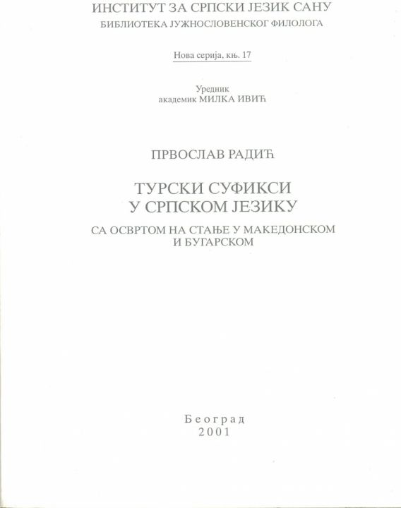 Првослав Радић, Турски суфикси у српском језику, Београд 2001.